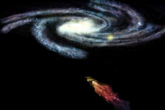 Закрите захисними магнітними полями високошвидкісне газова хмара наближається до Чумацького Шляху.