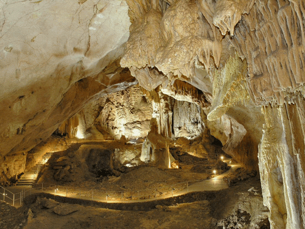 Через Північну галерею іде хід до 120-метрового Головного залу, південна стіна залу утворює різнокольорову кальцитову завісу, що є унікальним для європейських печер.