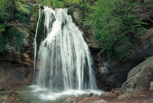 Водоспад Джур-Джур найпотужніший із кримських водоспадів, розташований в мальовничому урочищі Хапхал, в околицях Алушти. Водоспад Джур-Джур (вічно дзюркотливий) - мабуть, найкрасивіший водоспад Криму. Він невеликий, близько 15 метрів у висоту, але завжди повноводний. Розташований водоспад біля с. Генеральське (район Великої Алушти). Від стоянки, де зупиняються екскурсійні автобуси (або де ви залишите свій автомобіль), потрібно пройти близько кілометра по некрутому підйому через густий заповідний ліс. Але воно того варте! Велична природа, бурхлива гірська річка, дзюркотливі потоки водоспаду просто заворожують дітвору. Ліс тут темний і похмурий, крони дерев сплітаються і повністю закривають сонце. Буки, величезні в діаметрі, ніби вийшли з казки. Здається, що в дуплі причаївся лісовик. Та він і бував тут. Багато фільмів-казок знімалися саме в цих місцях. Тут, в ущелині Хапхал, можна побачити природу в первозданному вигляді, майже не займану людською присутністю. Старі буки з величезними дуплами, куди легко зможе вилізти не тільки малюк, але і дорослий, стануть прекрасним фоном для незвичайних фотографій. А якщо ви пройдете вгору за течією річки Улу-Узень близько кілометра, вас чекає сюрприз: ціла низка порогів-каскадів. І все це на тлі похмурих скель, зелених подушок моху і дерев, вік яких налічує не одне століття.