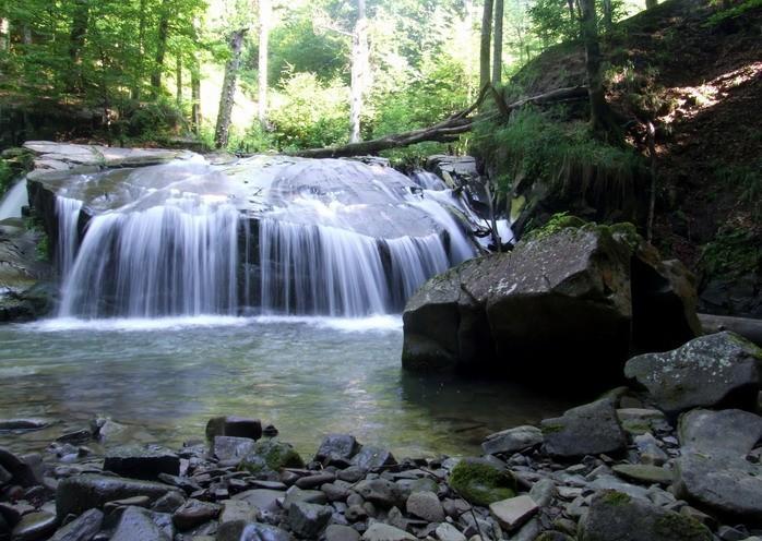 Особливо мальовничий водоспад після сильних злив або інтенсивного танення снігів. Тоді вся вода в жолоб не поміщається, а перекочується одним широким потоком