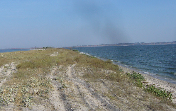 - Крутий, стрімкий, порізаний балками і ярами, складний з червонуватих глин. На північному березі є два миси - ділянки узбережжя, вдаються в лиман. Ці миси, а також розташовані приблизно навпроти них виступи південного берега ділять лиман на три частини: східну, куди впадає Дніпро; центральну, де зливаються Дніпровський і Бузький лимани; західну, яка з'єднується з морем.