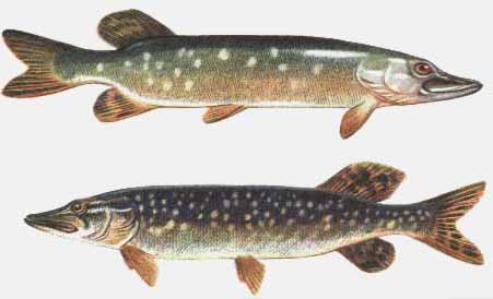 ЩУКА. Esox lucius L. Щука — представник родини щукових, ЯКІ характеризуються видовженим тілом і великою плоскою головою. Половину голови займає рот, утворений довгими щелепами. Широка паща озброєна сильними зубами. Тіло вкрите дрібною, міцно сидячою у шкірі лускою. Спинний плавець міститься на задній третині тіла, над анальним □твором, завдяки чому щуки здатні робити різкі й швидкі рухи. Серед прісноводних риб щука звичайна — найвідоміший хижак. її часто називають прісноводною акулою. Довжина тіла цієї риби нерідко перевищує 1,5 м, маса досягає ЗО кг, а школи й більше. Живе понад двадцять років. Багато відомостей про щук, які прожили по кілька сотень років, вважаються легендами.