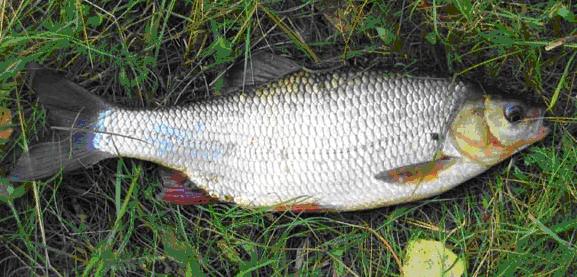 В'ЯЗЬ. Leuciscus idus (L.). У в'язя, на відміну від головня, тіло вище, але тонше, луска дрібніша, спинний та підхвостовий плавці усічені, забарвлення тіла трохи темніше, а плавці яскравіші: спинний та підхвостовий темно-червоні, решт«і червоні.