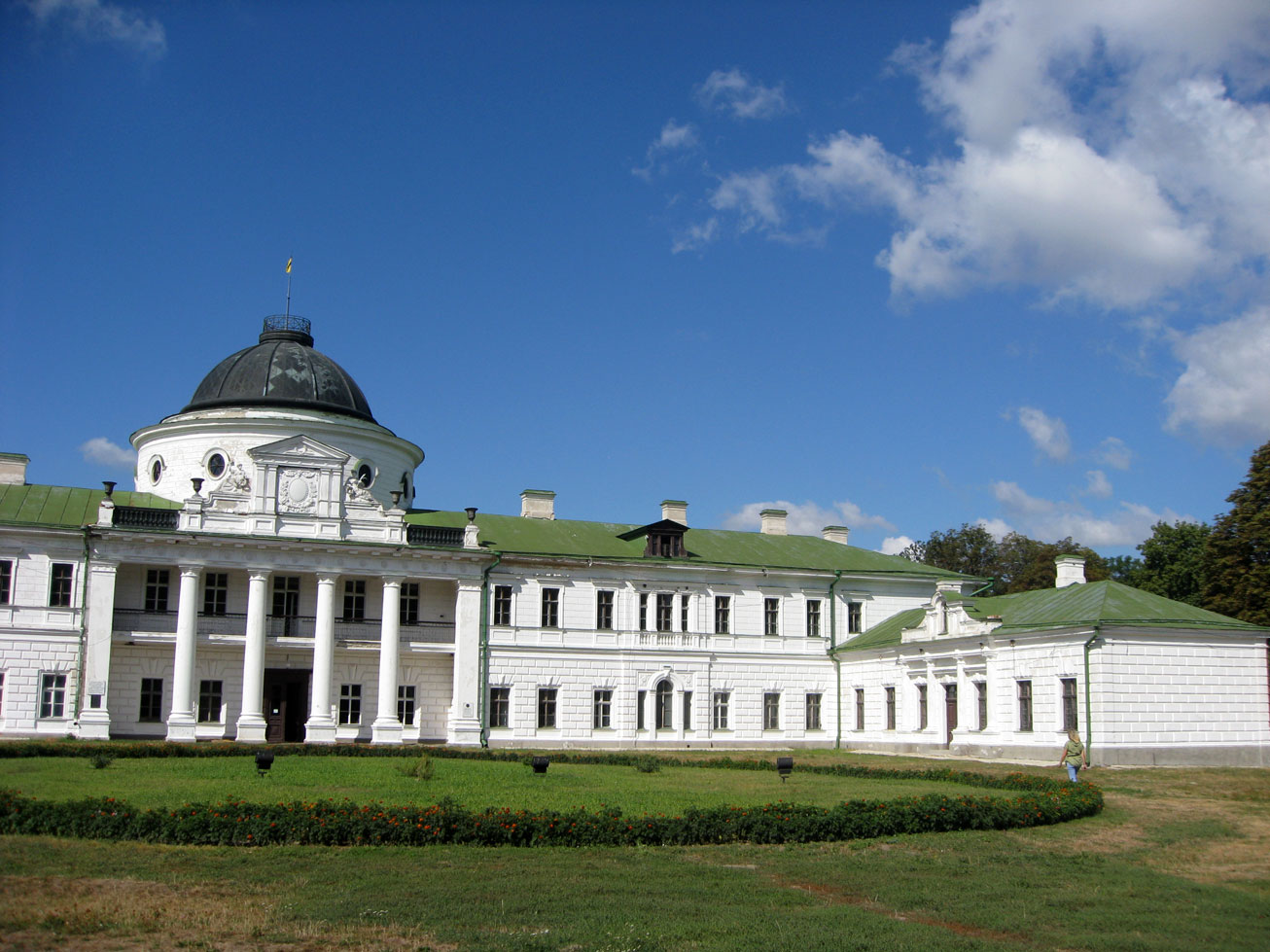 Формування архітектурного ансамблю та паркової зони розпочалось у 80-х роках XVIII століття, коли садиба належала П. О. Румянцеву-Задунайському, генерал-губернатору Малоросії, президенту Малоросійської колегії. За проектом московського архітектора Карла Бланка український зодчий Максим Мосцепанов звів розкішний палац і одночасно заклав парк. Архітектура палацу цього періоду належить до стилю романтичного напрямку, притаманного спорудам XVIII - кінця XIX ст.