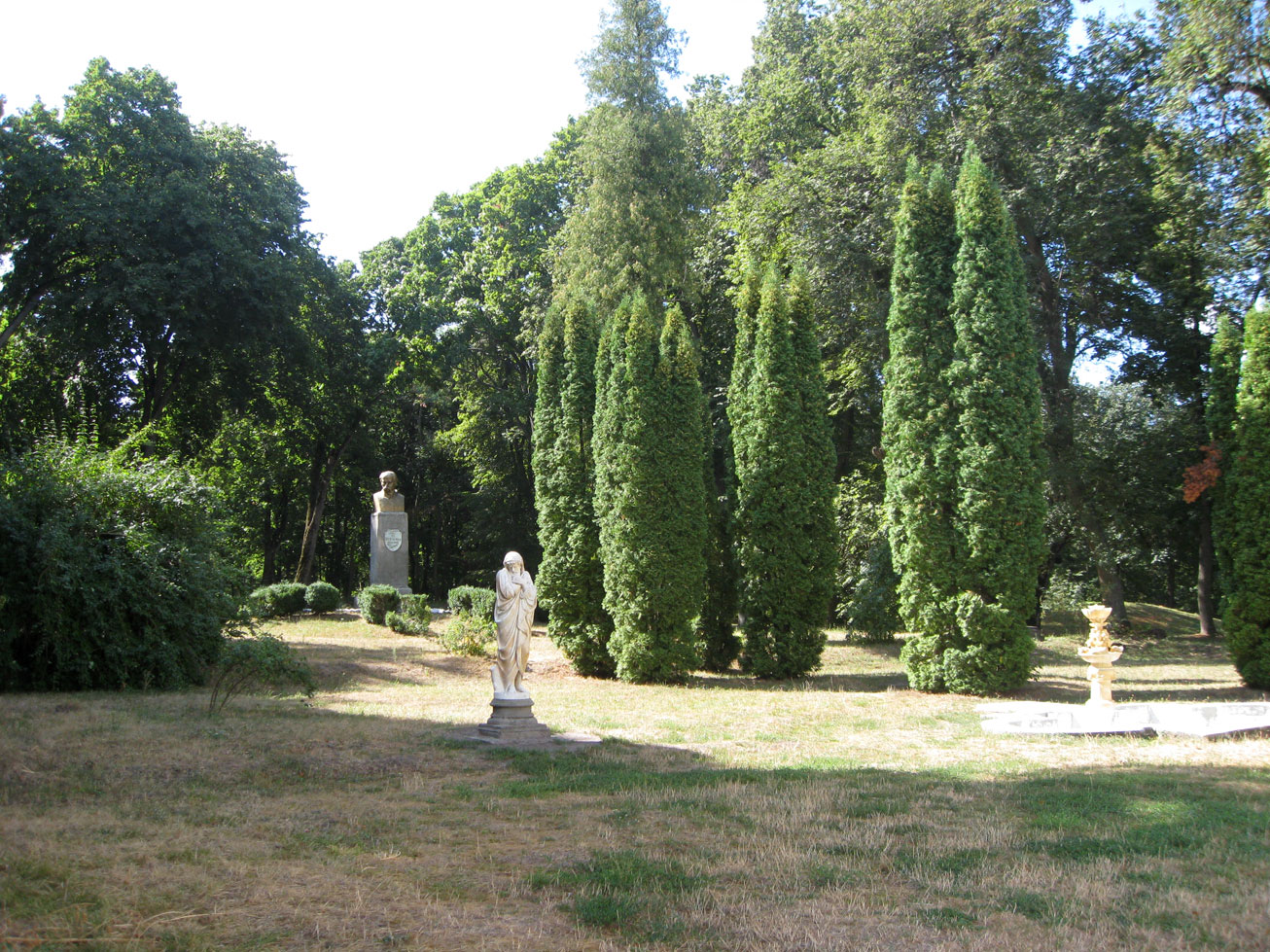 Парк площею понад 700 гектарів виник на основі природного лісу. В ньому налічується близько 50 видів дерев, які добре пристосувались до місцевих умов. Майстерно сформовані пейзажі, що приваблюють відвідувачів і фахівців. Однак парк потребує відродження: не збереглися містки, альтанки, скульптури. Для відродження паркової зони фахівець-ландшафтник А. В. Олехно провела дослідження і розробила проект відродження парку. Вона розкрила центральну частину парку, виявила паркові зони відпочинку: «Омелякова криниця», «Швейцарія», «Гірка Любові», «Гірка Вірності», знайшла місця втрачених містків та ін.