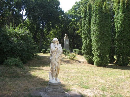 Саме у качанівському парку Тарновський (молодший) планував створити своєрідний «пантеон», де мали бути поховані видатні українці. Зробити це йому не вдалося. Проте садиба все ж таки стала місцем останнього спочинку двох видатних художників. Тут поховані перший ілюстратор «Мертвих душ» Гоголя О.О. Агін та близький товариш Шевченка художник П.М. Честахівський. Всі ці епізоди з життя власників Кача-нівки, безперечно, заслуговують на окрему увагу, тому певним чином підвищують і значущість самої садиби.