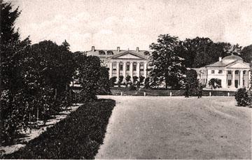 У кінці 18 ст. на території садиби розпочалися будівничв роботи, як вважають, за проектом архітектора Дж. Кваренгі. Головну композиційну вісь було прокладено від Миколаївської церкви через алею вікових дубів, парадний двір-курдонер до парафіяльної Троїцької церкви. Головною спорудою став мурований, двоповерховий палац з флігелями, розташованими обабіч. Олександр І, на честь перебування якого з боку парадного в’їзду від дороги Полтава–Гадяч збудовано Тріумфальну браму. Споруди садиби та художні цінності були зруйновані і пограбовані в роки громадянської війни. Архів і частину музею вивезено до Полтави.