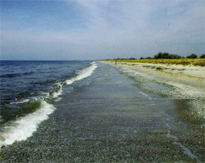 Рельєф заповідника рівнинний з численними зниженнями уздовж моря. Незначні підвищення слабко хвилясті. Для морського узбережжя є характерним літоральний вал з піску та черепашок. Піщані арени являють собою чергування бугрів 3-5 м заввишки із западинами. Піски підстеляються вапняками. Аренні і приморські піски - відносно молоді і дуже динамічні структури. Різноманітність їх тваринного і рослинного світу, високий ендемізм, геоморфологічна та ландшафтна унікальність висувають їх у раритети європейського рівня.