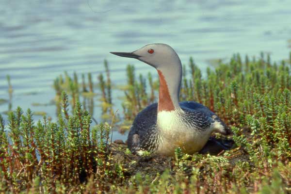 Горло і низ тіла білі, дзьоб сірий. Політ швидкий і прямий. З води злітає порівняно легко, не роблячи великого розгону. Звуки різноманітні: плач «уаа-уаа», грубе каркання «га-га-гара-га-га-гара», інколи «нявчання», яке закінчується мовби сміхом. В польоті тихе «га-га-га». На Україні нечисленний перелітний птах. Зимує в тих самих місцях, що й чорновола гагара.