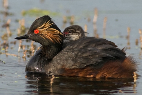 Чорношиїй норець (Podiceps nigricollis C.L. Brehm) — Невеликий (з чирка) птах. Голова і шия чорні, верх темно- бурий, черево біле. На голові навесні чорний «чуб» і по пучку віялоподібних золотаво-рудих видовжених пер. Дзьоб тонкий, трохи зігнутий догори. На крилі біла смуга.