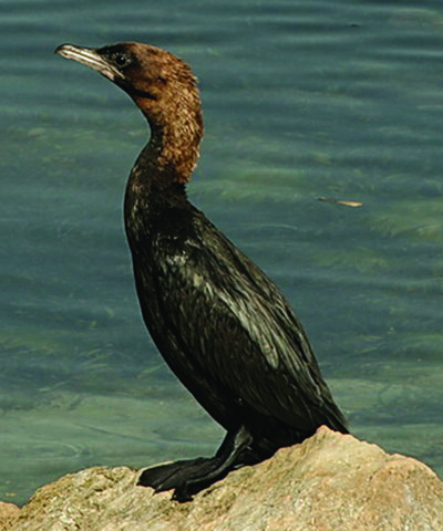 Малий баклан (Phalacrocorax pygmaeus Pall.) — за розмірами майже вдвічі менший від великого баклана. Голова і шия у дорослого птаха бурого кольору. Решта оперення чорна, із зеленим блиском. Навесні і влітку по всьому тілу з'являється біле пір' я у вигляді невеликих плямок. Голої ділянки шкіри біля дзьоба немає. У молодого птаха верх тіла бурий, низ білуватий.