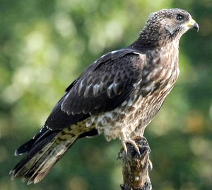 В польоті від звичайного канюка відрізняється довшими і вужчими крилами, довшим хвостом. Низ крил смугастий, на хвості — три широкі темні поперечні смуги.