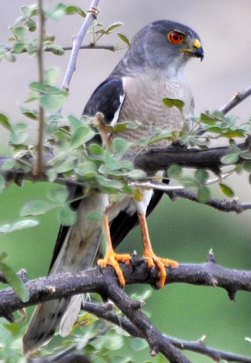 Яструб-тювик (Accipiter badius) схожий на малого яструба, але має вужчі й довші крила, коротший хвіст. На білуватому горлі різка поздовжня бурувата смужка. Очі червонувато-бурі.