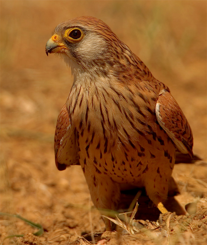 Степовий боривітер (Falco naumanni) подібний до звичайного боривітра, але менший і стрункіший, хвіст дещо ширший і більш заокруглений. У дорослого самця голова, хвіст і великі верхні покривні пера крил сірі. Решта верху тіла іржасто-руда, без темних плям, чим добре відрізняється від звичайного боривітра. Махові пера чорно-бурі. На кінці хвоста широка темна поперечна смуга. Низ тіла вохристо-рудий, з темними плямками. Самки та молоді птахи такі ж, як у звичайного боривітра.