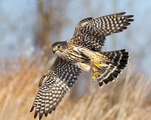 Дербник (Aesalon columbarius) — птах розміром з голуба. Дорослий самець зверху сизого кольору (крила і кінець хвоста чорні), а знизу вохристий, з бурими поздовжніми пістринами. Самка зверху бура, знизу вохриста, з поздовжніми пістринами, хвіст смугастий. Молодий схожий на самку, але темніший.