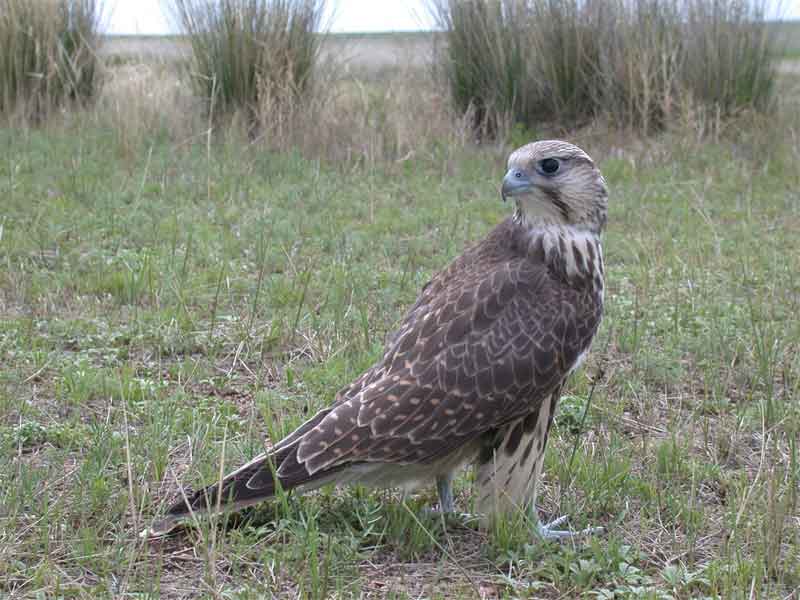 Балобан (Falco cherrug I. Е. Gray.) — найбільший із соколів, які гніздяться в Україні (трохи менший від крука), з відносно широкими крилами. У Самця верх тіла темно-бурий, низ і голова білуваті, з поздовжніми темно-бурими плямами, горло біле, ноги жовті. «Вуса» слабо помітні. Самка трохи темніша за самця. Молодий птах схожий на самку, але низ тіла більш плямистий. Політ швидкий, ковзання з нерухомими крилами чергується з частими змахами крил.
