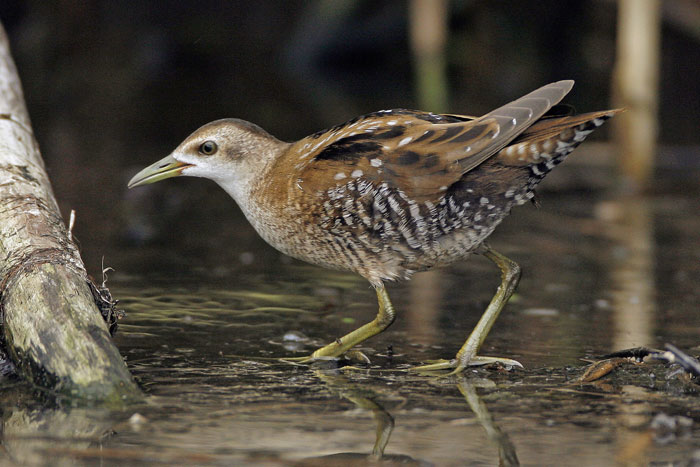 Мала курочка (Porzana parva Scop.) - дещо менша за погонича, на якого схожа виглядом і поведінкою. Верх тіла оливково- бурий, шия і низ аспідно-сірі без різких смуг, підхвістя смугасте. Ноги зеленуваті, досить довгі. Дзьоб зеленуватий, з червоною основою.