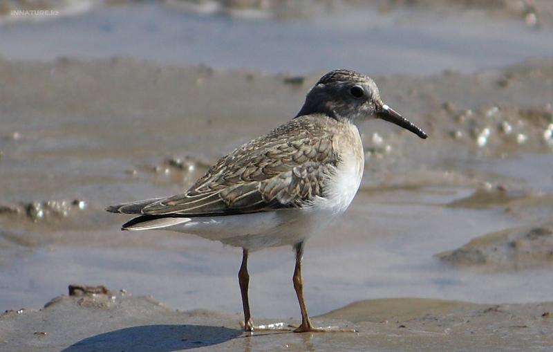 Білохвостий побережник (Calidris temminckii Leisl.) - за розмірами такий самий, як кулик-горобець, але верх тіла у нього не з рудими, а з сірими тонами. Ноги зеленувато-оливкові. В зимовому оперенні верх тіла темний, буро-сірий з чорнуватими рисками.