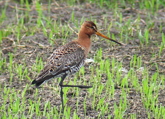Великий веретенник (Limosa limosa) — крупний кулик на високих ногах з дуже довгим прямим дзьобом. Навесні верх тіла строкатий (рудувато-бурий), голова і груди іржасто-руді, черево біле з темними поперечними смугами. В польоті добре виділяється двоколірний хвіст — біла основа і чорний кінець, біла смуга на