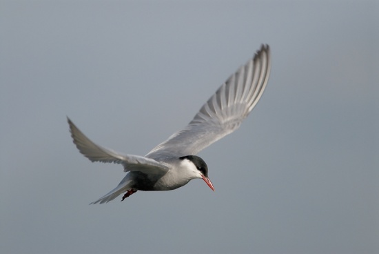 Голос грубіший, ніж у чорного крячка, звучить як від рив- часте «керр».