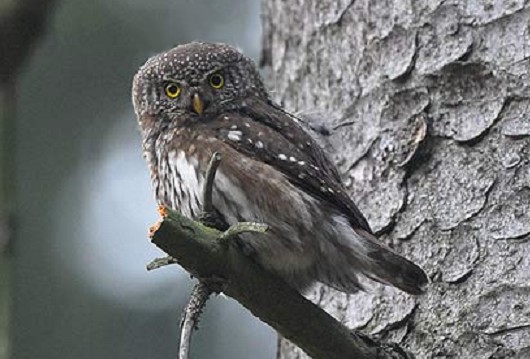 Сичик-горобець (Glaucidium passerinum) — сова маленьких розмірів (з шпака), з великою, без пір'яних «вушок» головою та коротким хвостом. Лицевий диск слабо помітний. Верх тіла буруватий, з невеликими світлими плямами, низ світлий з поздовжніми бурими смужками. На хвості 5 світлих поперечних смуг. Молодий птах сірувато-бурий, з дрібними білими плямками.