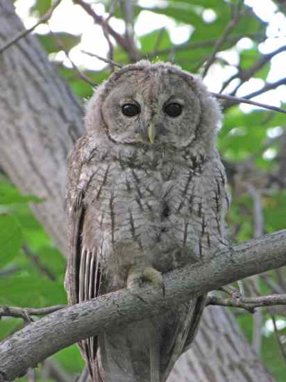 Сіра сова (Strix aluco L.) —трохи більша за сіру ворону, з великою круглою головою, відносно коротким хвостом, порівняно короткими й заокругленими крилами та чорними очима. Лицевий диск сіруватий, добре виражений. Забарвлення двох типів — сірувато-буре або рудувате, з темними поздовжніми стрижневими плямами на грудях і світлими на крилах. Молодий птах рудуватий, з блідо-бурим поперечним рисунком.