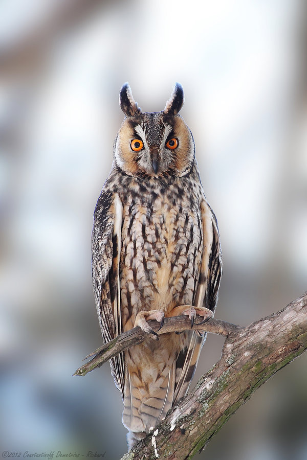 Вухата сова (Asio otus L.) — на голові добре помітно пір'яні «вушка». Верх тіла бурий з темним мармуровим рисунком, низ іржасто-жовтуватий з великими поздовжніми пістрявинами і тонким рисунком. Лицевий диск вохристий. Забарвлення молодого птаха жовтувате, з бурим поперечним рисунком.