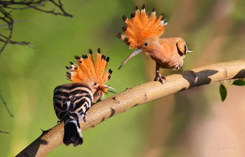 Політ хвилеподібний, з швидкими і частими змахами крил. В польоті добре помітні білі та чорні смуги крил, чорний з білою смугою хвіст та рудий «чуб». Обережний птах, особливо дорос лий.