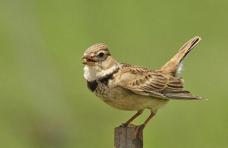 Степовий жайворонок (Melanocorypha calandra) — птах більший за горобця. Забарвлення типове «жайворонкове». Добре помітні дві чорні плями по боках вола.