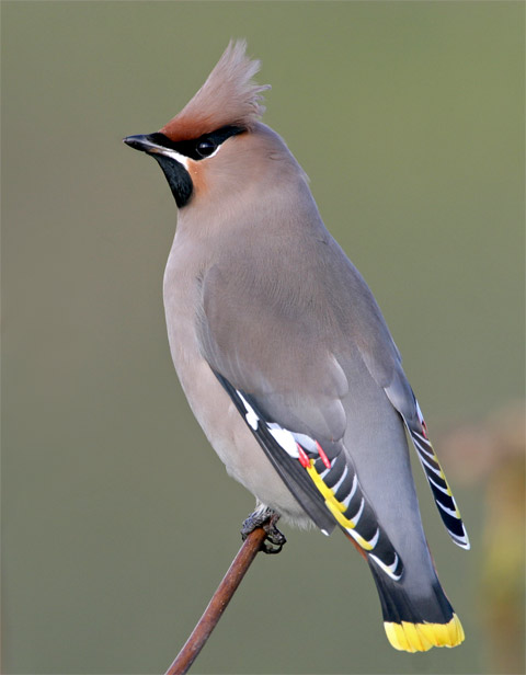 Омелюх (Bombycilla garrulus) - птах завбільшки з шпака, але дуже своєрідний на вигляд. Ще здалека помітний високий «чуб» на голові, наче зачесаний трохи назад. Загальний тон оперення рожевувато-сірий (з кофейним відтінком). На горлі велика чорна пляма. На кінці сіро-чорного хвоста яскрава поперечна жовта смуга. Махові пера крил чорні з білими й жовтими облямівками.