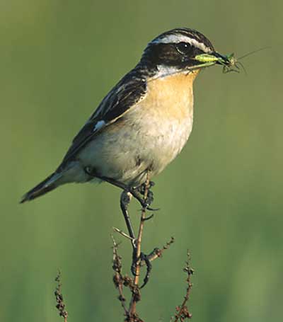 Луговий чекан (Saxicola rubetra) — самця верх тіла коричнювато-бурий із світлими ряботинами; добре помітні чорні плями на щоках і білі «брови»; низ вохристо-білий, але горло виразно рудувате. Самка забарвлена тьмяніше.