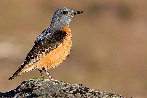 Кам’яний дрізд (Monticola saxatilis) — завбільшки з шпака. Легко впізнається в природі завдяки красивому строкатому забарвленню: у самців голова, шия, горло і воло сірувато-голубі, спина і поперек білі, черево і хвіст іржасто-руді; самка тьмяніша, плямиста.