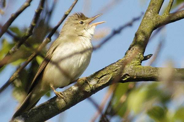 Чагарникова очеретянка (Acrocephalus palustris) - трохи менша від горобця, з одноколірним (без ряботин) оливково-бурим верхом (без рудого відтінку на надхвісті) і білуватим низом.