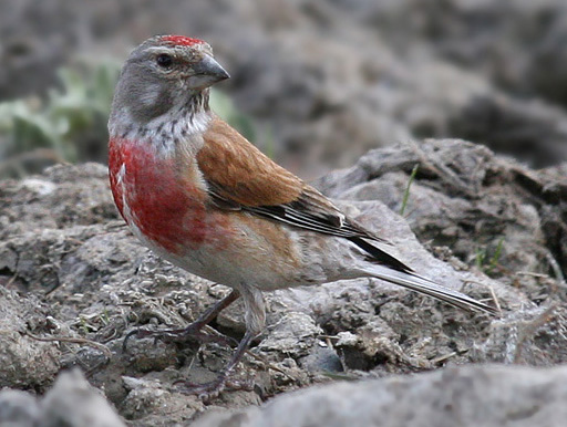 Коноплянка (Cannabina cannabina L.) — менша від горобця. Добре помітні сіра зверху голова і коричнева спина (відмінність від чечітки), а також (у самців навесні) кармінно-червоні (на відміну від чечітки без пістрявин) груди і червона «шапочка» на голові.