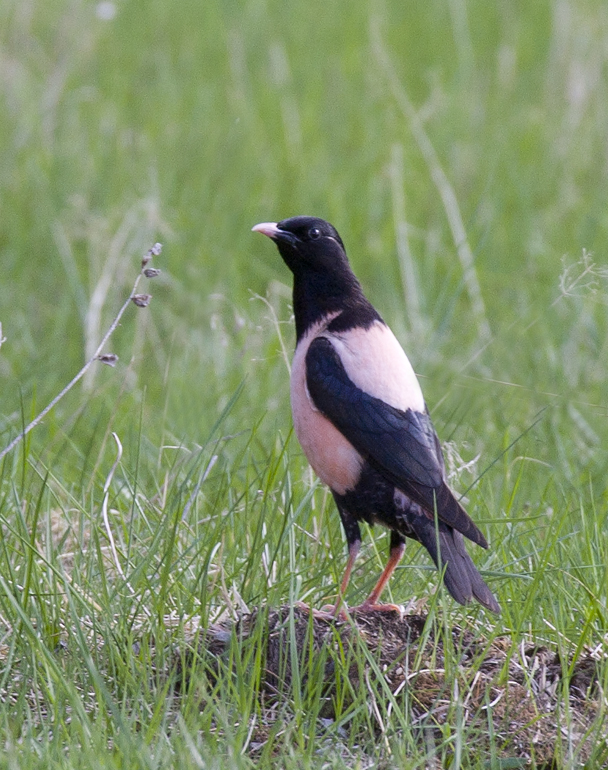Рожевий шпак (Pastor roseus L.) — за складом тіла і звичками схожий на звичайного шпака, але відрізняється від нього контрастним забарвленням: спина, боки й черево рожеві, решта оперення чорна з металічним блиском. На голові «чубчик» із зачесаних назад пір'їн.