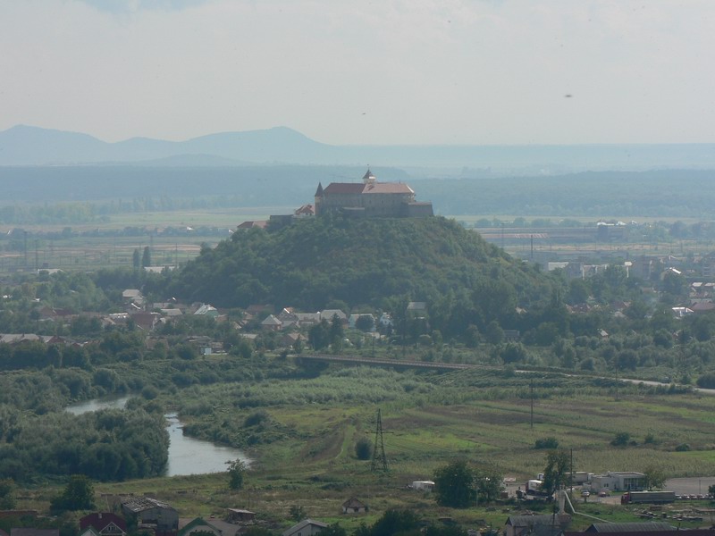 Мукачівський замок - видатна воєнно-архітектурна пам'ятка епохи феодалізму - увінчує одиноку сопку вулканічного походження, що підноситься на висоту близько 70 м над долиною р. Латориці. Цей грандіозний комплекс оборонних споруд склався протягом багатовікової історії Закарпаття. Він є надзвичайно складною й розвиненою системою, на окремих ланках якої можна простежити майже всі етапи розвитку оборонного будівництва Середньої Європи.Гадають, що вже в ІХ-Х ст. на цій горі існувало невелике прикордонне укріплення Київської Русі за Карпатами, яке було зруйноване татаро-монголами в 1242 р.Найдавніше ядро мурованого замку в Мукачеві, що займало східну частину гірської вершини, склалося з однієї квадратної в плані башти-донжона з криницею в нижньому ярусі, підсиленої ровом та валом. Детальні обміри та натурні дослідження 1971 — 1973 pp. дали змогу точніше визначити ту частину замку кінця XIV - початку XV ст., будівництво якої пов'язане з іменем русько-литовського князя Ф. Коріатовича. У 1396 р. угорський король Сигізмунд подарував йому Мукачеве та закріплені за замком володіння. На початку XV ст. донжон обведено кам'яним оборонним муром з кількома півкруглими або підковоподібними в плані баштами. Три з них збереглися до нашого часу. Форма плану замкового подвір'я - Верхнього замку - наближалася до овалу або до прямокутника з закругленою південною частиною. В'їзд у Верхній замок був влаштований, напевне, з півдня. Існуючий нині прохід на його подвір'я з Середнього замку в південно-східній круглій башті влаштовано значно пізніше. На рівнині, що оточує гору, існував рів, який наповнювався водою з р. Латориці, а на внутрішньому березі рову був укопаний дубовий частокіл - "паланок", який і дав давню назву замкові. Первісно до замку вела крута дорога по південному схилу гори, а на початку XVII ст. на західному схилі було влаштовано нову дорогу, якою користуються й нині.Поширення й удосконалення вогнепальної зброї, яка потребувала модернізації фортифікаційних споруд, а також пошкодження цих споруд під час воєнних дій та зміна володарів замку були причиною того, що його протягом XVI-XVIII ст. неодноразово добудовували та удосконалювали. Поступово забудовувалася терасами вся Замкова Гора. Комплекс споруд, які футтувалися навколо дворів Верхнього, Середнього й Нижнього замків, та передворітпі укріплення "спускалися" в напрямку північ-південь.У 1633 p., коли замком володів семиградський (трансільванський) князь Георгій Ракоці, французькі інженери докорінно, згідно з новими досягненнями фортифікаційного мистецтва, удосконалили оборонну систему замку. В цей час збудовано могутні кам'яні бастіони, що збереглися до нашого часу, та систему звідних мостів з надвтзними спорудами. Мукачівський замок перетворився на могутню бастіонну, пристосовану до артилерії, фортецю, взяти яку приступом було майже неможливо. Він складався з трьох основних частин, відокремлених одна від одної стінами та витесаними в скелі ровами, через які перекинуто мости (в давнину - звідні). Кожна з цих частин могла захищатися самостійно.У 1688 р. після облоги німецькими військами, яка тривала близько трьох років, замок був дуже пошкоджений і потребував ремонту й перебудов згідно з вимогами тогочасної військової техніки. Поблизу первісного "паланка" рови засипали й набагато далі від гори, на відстані 