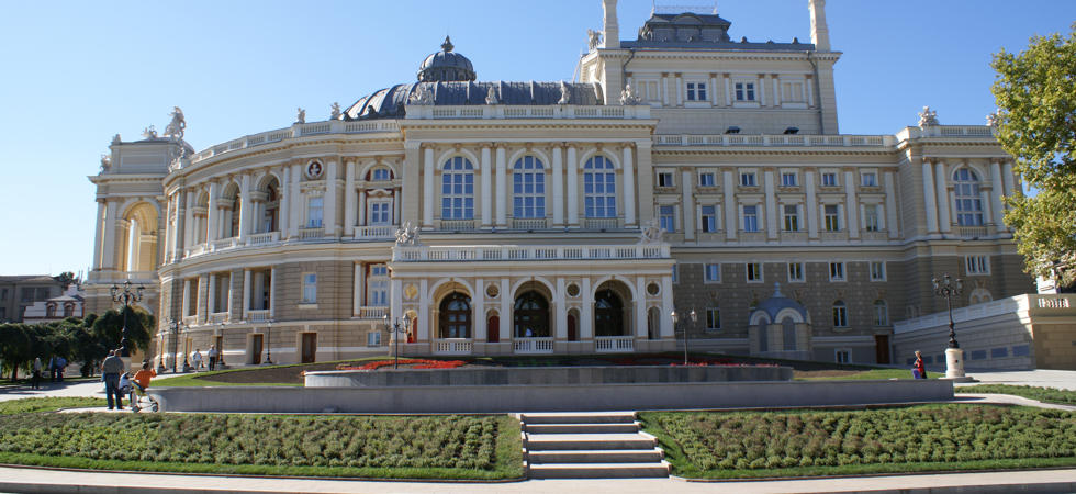 Будинок театру належить до найважливіших архітектурних і розпланувальних домінант приморської частини історичного середмістя. Замикає перспективу однієї з головних вулиць - Рішельєвської. Важливу роль тут, а особливо в морському фасаді міста, відіграє силует споруди.Театр збудований у 1884-1887 pp. за проектом віденських архітекторів Ф. Фельнера та Г. Гельмера після декількох всесвітніх конкурсів (автори - знані в Європі творці відомих театральних будівель Дрездена, Будапешта, Відня та інших міст). Зведений на місці створеного на початку XIX ст. за проектом петербурзького архітектора Ж. Тома де Томона міського театру, що згорів у 1873 p., новий будинок театру значно перевищив його за розмірами. Будівниками були відомі одеські архітектори О. Бернардацці, Ю. Дмитренко, Ф. Гонсіоровський, скульптурне оздоблення виконали Ф. Врідль, Ф. Наталі, Л. Стрікціус, Ф. Етель, живописні роботи в інтер'єрах - віденський художник Лефлер. У 1925 р. споруда постраждала від пожежі. У процесі відновних робіт 1925-1926 pp. встановлено протипожежні залізобетонні завіси, нове технічне обладнання сцени і т. ін. У ході реконструкції 1965-1967 pp., що здійснювалася за участю спеціалістів Києва, Одеси, Москви й Ленінграда, в театрі реставровано й у ряді випадків відновлено монументальне й декоративне оздоблення, меблі, первісний вигляд завіси тощо, встановлено сучасне обладнання сцени. З 1996 р. провадяться інженерні протиаварійні та реставраційні роботи.Історія театру пов'язана з іменами багатьох славетних діячів української та світової культури. У різні роки тут працювали й гастролювали композитори А. Рубінштейн, М. Римський-Корсаков, П. Чайковський, співаки Ф. Шаляпін, Л. Собінов, А. Нежданова, балерини А. Павлова, О. Лепешинська, Г. Уланова, драматичні актори В. Комісаржевська, С. Бернар, Е. Дузе, М. Заньковецька, П. Саксаганський, М. Садовський та багато інших.Фасади театру вирішені з переважанням форм неоренесансу та віденського бароко, інтер'єри - у формах пізнього рококо. Будівля належить до типу найбільш містких щодо кількості глядачів балконно-ярусних театрів (загальна кількість місць - 1590). План споруди складається з півциркульного глядачевого комплексу та суміжної з ним прямокутної в плані сценічної частини. Ядром глядачевого комплексу є підковоподібний у плані зал, навколо якого групуються центральний вестибюль, фойє, розташовані радіально головні та кілька допоміжних сходів, кулуари. Ядро сценічної