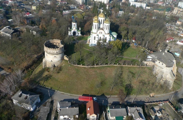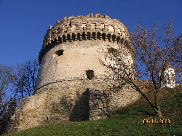 вежу укріплено масивними контрфорсами. У 1797 р. верхній ярус будівлі був настільки зруйнований, що його розібрали й на початку XIXст. відбудували зановво. У 1913-1915 pp. вежу капітально відремонтували й пристосували для потреб Братства ім. князів Острозьких" (архітектор -В. Леонтович, консультант - академік П. Покришкін).Вежа належить до типу житлових оборонних башт, про що свідчать кам'яні стіни завтовшки 2,0-2,6 м, первісний вхід на рівні 2-го ярусу та криниця, влаштована в одному з приміщень нижнього ярусу. Вежа є унікальною оборонною спорудою середньовічної Волині та єдиною на території України житловою баштою 2-ї половини XIV ст., яка порівняно добре збереглася донині. Богоявленська церква стоїть у північній частині Замкової Гори, біля давнього оборонного рову. Датується 1-ю половиною XV ст. У 1521 р. (за написом, вирізьбленим над вікнами північної стіни) храм пристосовано до оборони - його північна стіна, потовщена та обладнана чотирма бійницями для гармат, стала складовою частиною північного замкового муру.З 1636 р. до середини XIX ст. будівля не використовувалась і дійшла до стану руїни. Відновлено її за проектом В. Токарева у 1886-1891 pp., причому від давньої споруди збережено лише північну стіну, а на старих фундаментах зведено храм, який за схемою плану та об'ємно-просторовою структурою повторює давню споруду. Церква являє собою хрещатобаневий шестистовпний тринавовий триапсидний п'ятиверхий храм. Як і в храмах давньої Русі, бічні верхи її розміщені над камерами між раменами просторового хреста, а рамена перекриті циліндричними склепіннями, відображеними на чотирьох фасадах закомарами.