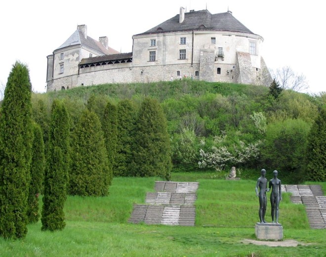 А до самого замку вели дві насипні дороги: одна від так званої “Бродської брами” - сенаторська, а друга з Олеська - королівська. Вони були обсаджені липами. Тепер на місці цих гребель вулиця, яка веде із Олеська до замку.