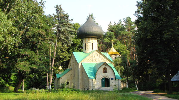 Церква розташована на території Наталіївки - колишнього маєтку цукрозаводчика П. Харитоненка, широко відомого благодійника, мецената та колекціонера, за походженням з селян-чумаків, котрому за особливо корисну та плідну діяльність указом російського імператора Миколи II 18 квітня 1899 р. було надано дворянство.Як свідчить напис на північній стіні, храм Всемилостивого Спаса закладено 29 червня 1911р. на знак явленої роду милості Божої, можливо, у зв'язку з одруженням доньки господаря Наталії з князем М. Горчаковим - представником найдавнішого князівського роду. П. Харитоненко бачив свою садибу культурним осередком краю, а церкву споруджував як храм-музей для розміщення власної багатої колекції стародавнього живопису та церковного начиння.Основні проекті креслення виконані в 1908 р. архітектором О. Щусєвим, а будівництво провадилось під орудою архітектора О. Рухлядєва з 1911 до 1913 р.Церква виконана у формах давньоруської псковсько-новгородської архітектури, яка на шляху пошуку національної форми російської архітектури на рубежі XX ст. оцінювалась такою, що найповніше відповідала новоявленій естетиці модерну.Церква мурована з цегли й облицьована вапняком. Це тридільна, однобанева споруда з маленькою півциркульною апсидою, ризницею з півночі та окремою двоярусною дзвіницею з півдня. Дзвіниця з'єднана з основним об'ємом коротким переходом із вхідним ґанком. Головна нава церкви - прямокутна в плані і відокремлена від вівтарної частини стіною з аркою. З заходу до нави прилягає вужчий за неї прямокутний притвор, вхід до якого вирішений у вигляді своєрідного порталу зі стрілчастим верхом та низько спущеним дахом. Під церквою та дзвіницею - підвал з цегли та бетону, перекритий півциркульними та хрещатими склепіннями, із входом зі східного боку по стрімких цегляних сходах.Дах церкви укритий мідними листами, баня - залізними.Дзвіниця мурована з цегли й обличкована вапняком, з низьким шатровим завершенням. Перший ярус у плані квадратний, другий - восьмигранний, сформований пілонами, поєднаними зверху втопленими півциркульними арками.