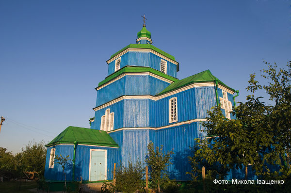 Дерев'яна церква розташована в колишньому передмісті, на огородженій ділянці, і домінує над одноповерховою забудовою. Споруджену в 1725 р. на території запорізької фортеці Переволочної, церкву (первісна назва - Воскресенська) в 1784 р. перевезено по Дніпру до Берислава. Один з відомих ремонтів здійснений наприкінці XIX ст. Пошкоджена в роки Другої світової війни. Споруда належить до архаїчного типу дерев'яних тридільних одноверхих церков. Всі зруби - гранчасті. До центрального зрубу прилягають значно нижчі гранчасті притвори, а до бабинця - західний п'ятистінний притвор із головним входом. Пірамідальна за характером об'ємно-просторова композиція церкви акцентована високим центральним зрубом. За планом це восьмерик, дещо витягнутий вздовж поперечної осі. Верх має два заломи. Простір центрального зрубу домінує в інтер'єрі завдяки візуальному поєднанню з ним внутрішнього простору бабинця, який розкривається у наву через велику арку. Стіни - з дубового брусу, на підмурках; фасади пошальовані. Дахи укриті покрівельною сталлю. Церква є унікальним для півдня України зразком дерев'яного зрубного храму XVIII ст.