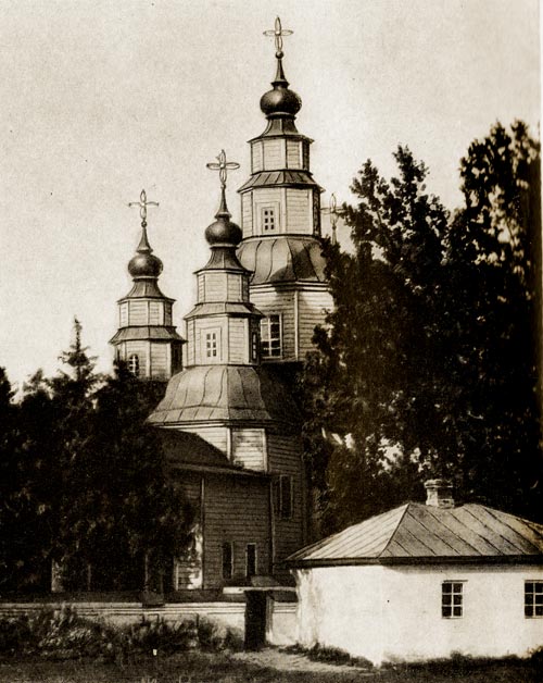 . Збудована 1761. Дерев’яна, п’ятизрубна. Центральна дільниця в плані утворювала квадрат з відсіченими кутами. До неї примикали менші гранчасті зруби рукавів і вівтаря, обабіч якого були невеликі приміщення ризниці й паламарні. Увінчувалася п’ятьма багатозаломними банями. На початку 19 ст. з Західної прибудовано чотириколонний портик і ганки до північного і південного входів. З захіного боку була багатоярусна дзвіниця типу восьмерик на восьмерику на четверику. Розібрана.