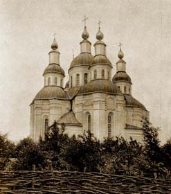 УСПЕНСЬКА ЦЕРКВА у селі Лютеньці Гадяцького району. Споруджена 1686 коштом гадяцького полковника М. Бороховича, який був у ній похований. Відноситься до етапних творів архітектури українського Відродження. Мурована, дев’ятидільна, хрещата, п’ятибанна. Гранчасті рукави просторового хреста увінчані двозаломними верхами. Такий самий і центральний верх, лише з набагато ширшою банею. Одноярусні приміщення у міжрукав’ях квадратні у плані, їх понижені обсяги підкреслюють стрункість і масштабність бічних компартиментів, пірамідальність центричної композиції. Одна з найдосконаліших за пропорціями дев’ятидільних споруд. Відзначалася гармонійністю частин, оригінальністю архітектурного рішення кожної грані, порталів, віконних обрамлень, карнизів тощо. З західної сторони був невисокий оригінальний по формі двох’ярусний ганок у вигляді гранчастої ротонди. Церква – одна з рідкісних пам’яток, що у муруванні стін мала внизу дерев’яні бруси – зв’язки, а також залізні затяжки у п’ятах підпружних арок. Церква була трипрестольна, з приділами в ім’я архангела Михаїла і св. Трійці, мала різьблений п’ятиярусний іконостас, один з найошатніших на Лівобережній Україні (знищений у 1-й половині 20 ст.). На початку 19 ст. із Заходу споруджено чотириярусну дзвіницю. 1887–1890 її розібрано і натомість збудовано муровану двох’ярусну дзвіницю в архітектурних формах історизму. Обабіч дзвіниці зведено дві брами. 1-й ярус – прямокутний гридільний, 2-й – двоповерховий восьмерик з верхнім арочним ярусом дзвону, увінчаним восьмигранним куполом з переломом і ліхтариком. 1954 церква поставлена під охорону держави як пам’ятка архітектури. 1955 під керівництвом архітектора П. Захарченка розроблено проект реставрації, що передбачав відновлення гіпотетичних первісних форм п’яти верхів, спотворених перебудовою 1890. Через некваліфіковане виконання реставраційних робіт 1974 пам’ятка розвалилася. 1983 розібрана дзвіниця.