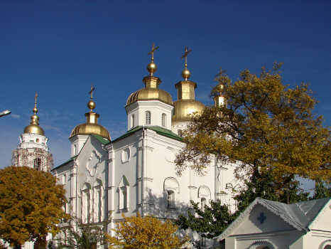 ХРЕСТОЗДВИЖЕНСЬКИЙ СОБОР у Полтаві. Головний храм Полтавського Хрестоздвиженського монастиря. Масивний тринефний семибанний собор розташований на стрілці високого мису, є не лише домінантою монастирського ансамблю, але й домінує у ландшафтній ситуації Полтави й околиць. Споруджений 1689–1709 (є відомості про освячення 1756).