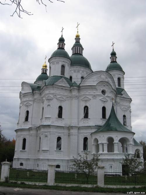 РІЗДВА БОГОРОДИЦІ СОБОР в місті Прилуки. Збудовано 1806–1815 у формах зрілого класицизму. Мурований, кубічний об’єм вінчає великий півсферичний купол на круглому барабані. Фасади прикрашено трикутними фронтонами, зх. – чотириколонним портиком, до якого вели сходи (не збереглися). У середині – залишки олійного стінопису (вірогідно 1815). Поруч стояла двох’ярусна дзвіниця (не збереглася); 3)Домпицького монастиряРіздва Богородиці. Закладено 1800 на замовлення графа І. А. Кушельова-Безбородька, якого тут згодом й поховано. Освячено 1806. Головна домінанта ансамблю –мурований, кубічний, чотиристовпний, дев’ятидільний, у формах зрілого класицизму. Південний, північний і західний входи прикрашали чотириколонні портики тосканського ордеру (не збереглися), зі сходу – напівкругла апсида. Увінчаний півсферичним куполом на циліндричному барабані.