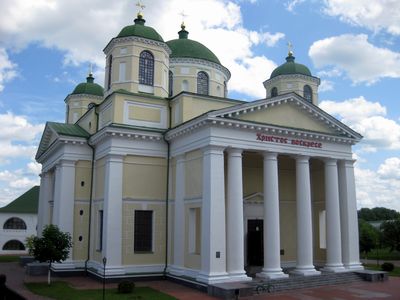 СПАСО-ПРЕОБРАЖЕНСЬКИЙ СОБОР у Новгороді-Сіверському. Міститься у центрі Спасо-Преображенського монастиря на місці Спаського собору початку 13 ст. Будувався у 1791–1796 за проектом архітектора Дж. Кваренгі під доглядом архітектора І. Яснигіна. Оздоблювальні роботи через брак грошей відновилися тільки 1804–1806. Вже 1814 почав руйнуватися. 1821 за проектом архітектора А. Карташевського з протиаварійною метою встановлено додаткові колони для підтримки підпружних арок. У 1858, 1910 – ремонтувався. Після Великої Жовтневої соціалістичної революції використовувався як музей. Пошкоджений у роки Великої Вітчизняної війни 1941–1945. Ремонтувався 1968. 1983 опрацьовано проект реставрації та пристосування собору для музею «Слово о полку Ігоревім». Збудований у традиціях російського класицизму. Мурований, квадратного плану, з колонним портиком тосканського ордера на західному фасаді і апсидою у вигляді півротонди. Вінчає урочисту споруду великий півсферичний купол посередині і чотири менші, восьмигранні по кутах. Одна з найкращих будівель видатного митця. Входить до Новгород-Сіверського філіалу Чернігівського архітектурно-історичного заповідника.
