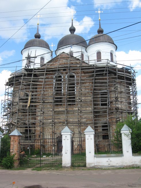 Іконостас різьблений, золочений у 7 ярусів, роботи ніжинських майстрів, одна з ікон вівтаря написана київським митрополитом Рафаїлом Заборовським. Зазнав значних пошкоджень під час пожеж 1750, 1757, особливо 1797. Відбудований 1798–1799. Багаторазово перебудовувався. У 1814 фронтони перероблено на трикутні шпилі, збільшено вікна, змінено форму верхів. Знову розписаний 1812–1818. 1969 проведено консерваційні роботи.