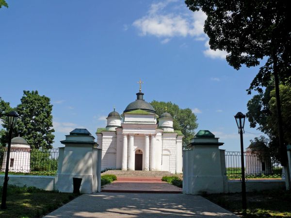 ГЕОРГІЇВСЬКА ЦЕРКВА у селищі Качанівці Ічнянського району. Побудована 1817–1828 в стилі ампір. Мурована, однобанна, хрещата, з колонними портиками доричного ордеру на фасадах (пд. і пн. не збереглися). Мала дзвіницю над зх. входом (другий та третій яруси втрачені). З південного та північного боків фланкована двома баштами, завершує перспективу головної алеї Качанівського парку.