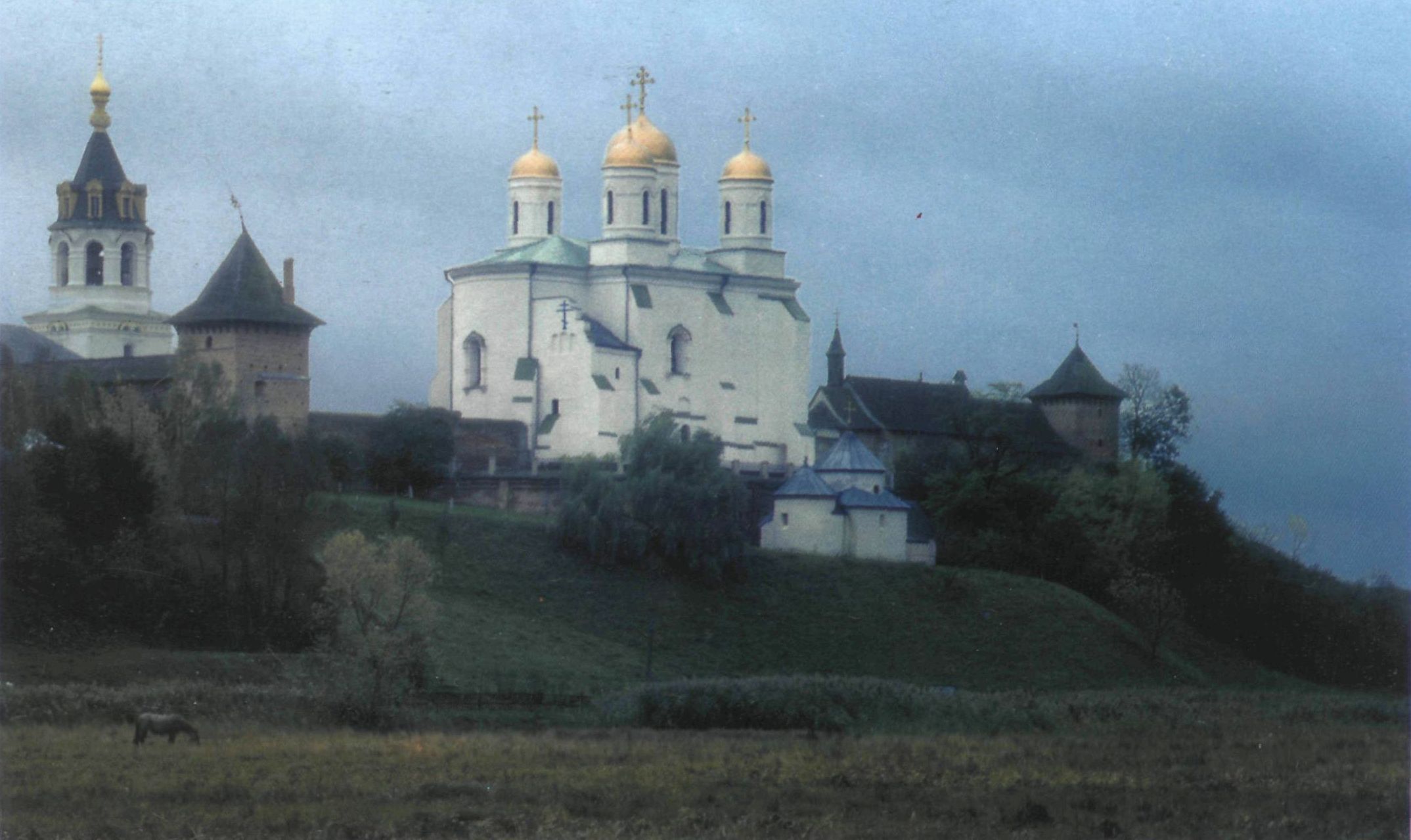 Монастир належить до характерного для епохи феодалізму різновиду оборонних комплексів, у розплануванні яких застосовано елементи регулярності. Розміщений на лівому, досить високому березі р. Луги, він посідає вигідне із стратегічного погляду місце. Комплекс мурованих споруд монастпря-фортеці виник на місці давнього дерев'яного монастиря, заснованого в XI ст, і сформувався протягом 2-ї половини XV ст. Спочатку було побудовано оборонні мури, Троїцьку церкву та келії, а в 1495 р. - Успенський собор. Форма плану комплексу - трапеція, майже прямокутник, витягнутий зі сходу на захід. Особливістю комплексу є розміщення пристосованого до оборони Успенського собору у сгворі укріплень. Це притаманно феодальним замкам, а в монастирських комплексах, як правило, не зустрічається. Друга особливість - нерівномірне розміщення оборонних споруд. Відсутність природного захисту з півдня компенсувалася тим, що ця ділянка була найбільш укріпленою - з семи башт тут розміщено чотири (дві наріжні, вїзна та кругла). Наприкінці XIX - на початку XX ст. за проектом архітектора М. Козлова провадилася реконструкція комплексу, внаслідок чого в спорудах ансамблю з'явилися елементи псевдоросійської архітектури XVII ст, які значно змінили первісний вигляд будівель. Успенський собор належить до оборонних церковних споруд і був важливою ланкою оборони в системі захисту монастирського подвір'я та навколишньої території. Дослідженнями 1946-1947 pp. встановлено, що храм первісно був безбаневим, з чотирма наріжними оборонними баштами, нижній ярус яких був квадратним, а верхній - восьмигранним. Одну з цих башт (північно-східну), що була збудована раніше, введено в об'єм вівтарної частини храму. Успенський собор - цегляний тринавовий храм з півциркульною в плані вівтарною частиною. Середня нава значно ширша від бічних. Усі нави перекрито циліндричними склепіннями однакової висоти. У 1724 р. собор зазнав перебудов - було розібрано дві східні оборонні башти з метою надання храмові вигляду католицького костелу. У період з 1891 р. до початку XX ст. внаслідок "реконструкції були знищені самобутні риси архітектури собору. Замість двох розібраних західних оборонних башт споруджено три верхи з цибулястими банями. Між контрфорсами західного фасаду вбудовано ґанок з химерним фронтоном, на вікнах з'явилося перспективне обрамлення з "кокошниками" та колонками, прикрашеними "диньками", фасади завершено новим карнизом. Оборонні мури, що оточують монастирське подвір'я по периметру, - цегляні. У їх верхній частині влаштовано дерев'яний бойовий хід біля бійниць. Кути підсилено наріжними двоярусними баштами. Три з них - квадратні в плані, перекриті чотириграннимнаметом. Круглу в плані наріжну південно-східну оборонну башту, круглу південну башту та значну частину південного оборонного муру розібраного при будівництві школи наприкінці XIX ст. Дзвіниця - квадратна в плані. Первісно це була триярусна в'їзна башта, розміщена в південному оборонному мурі так що вісь проїзду на монастирське подвір'я була орієнтована на центр південного фасаду Успенського собору. Під час реконструкції в XIX -на початку XX ст. вїзну башту перетворено на дзвіницю. Надбудовано верхній восьмигранний ярус із півциркульними отворами в кожній грані, завершений високим восьмигранним наметом, характерним для російського будівниц