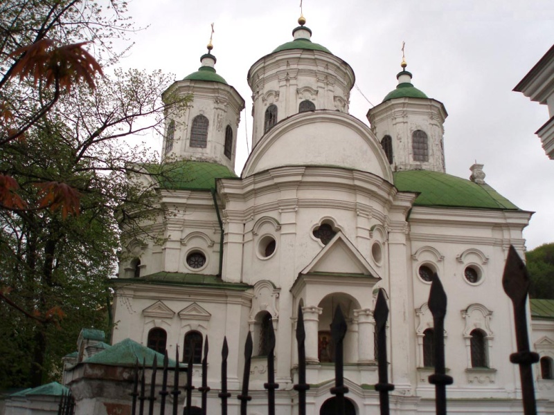 Комплекс Покровської церкви та дзвіниці розташований на Подолі біля підніжжя Старокиївської гори. У XV ст. тут була церква Різдва Богородиці, що належала вірменській колонії. У 1685 р. па цьому місці збудовано дерев'яну Покровську церкву, яку змінила трибанева мурована церква Покрова Богородиці, споруджена в 1766-1772 pp. за проектом видатного українського архітектора І. Григоровича-Барського. Новаторство майора проявилося в характерному для народного дерев'яного зодчества поєднанні у споруді триконхового та трикамерного храмів. Про високу майстерність архітектора свідчить розроблення деталей - ґаночків з арками на південному й північному фасадах, круглих і хрещатих вікон, багатопрофільних карнизів, різноманітних за формою сандриків. Після пожежі 1811 р. церква втратила частину ліпного декору, а також барокову форму бань, які після відбудови стали сферичними. У 1824 р. до західної частини церкви прибудовано двоповерхову теплу церкву. Інтер'єр декоровано спареними пілястрами коринфського ордера, які акцентують центральний підбаневий простір, та карнизними гуртами. Пам'ятка є шедевром архітектури українського бароко і одним з найкращих творів І. Григоровича-Барського, яскравого представника київської архітектурної школи доби бароко.